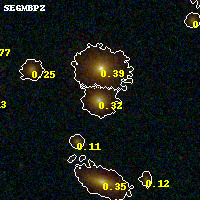 Object #300 x,y = (1846, 2792) RA, Dec = (09:49:53.832, 17:07:32.88) = (147.47430, 17.12580) BPZ = 0.320 [0.220--0.358] type = 3.40 (Ell5_A_0 - Ell4_A_0) chisq2 = 0.16 ODDS = 0.84 z_cluster = 0.383