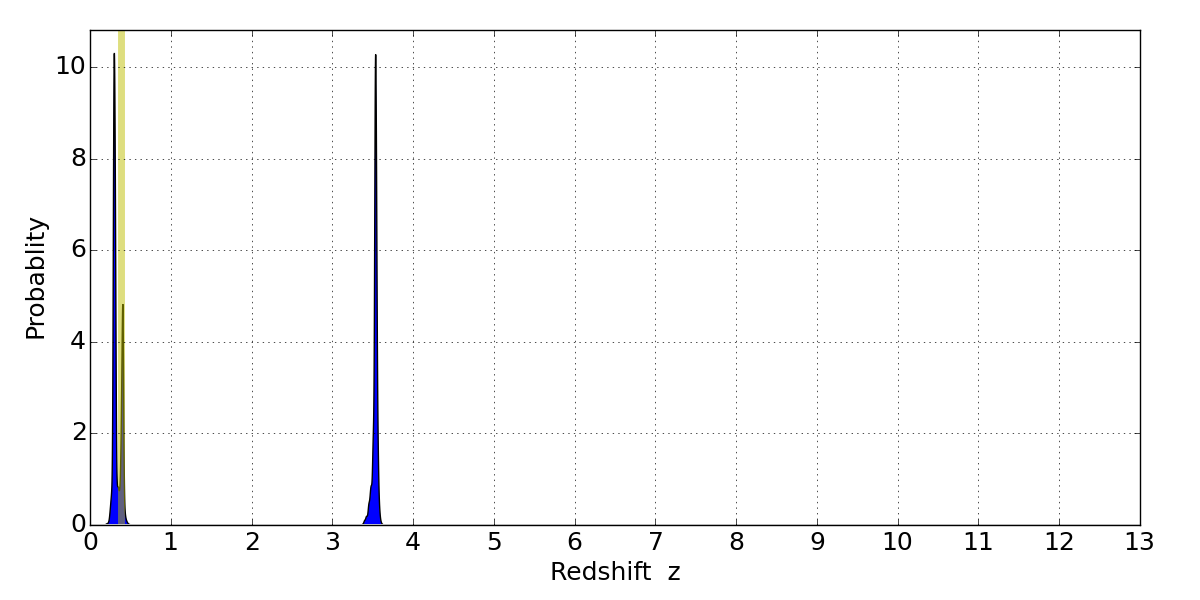 Best viewed in a wide browser window (1200 pixels or more). Download SED & P(z) plots to view larger versions.