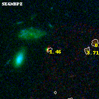 Object #4 x,y = (1766, 3740) RA, Dec = (09:49:54.168, 17:08:29.76) = (147.47570, 17.14160) BPZ = 1.462 [0.881--5.420] type = 2.00 (Ell6_A_0) chisq2 = 0.01 ODDS = 0.17 z_cluster = 0.383