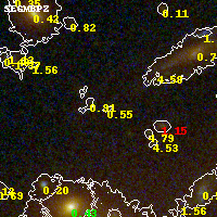 Object #412 x,y = (2064, 2654) RA, Dec = (09:49:52.920, 17:07:24.60) = (147.47050, 17.12350) BPZ = 0.554 [0.212--4.153] type = 6.90 (Scd_B10 - Sbc_B10) chisq2 = 0.58 ODDS = 0.05 z_cluster = 0.383
