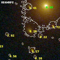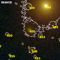 Object #438 x,y = (1993, 2435) RA, Dec = (09:49:53.232, 17:07:11.28) = (147.47180, 17.11980) BPZ = 0.354 [0.299--0.857] type = 3.00 (Ell5_A_0) chisq2 = 0.07 ODDS = 0.78 z_cluster = 0.383