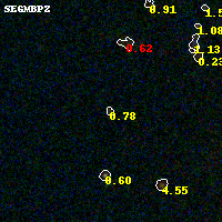 Object #476 x,y = (1779, 2519) RA, Dec = (09:49:54.120, 17:07:16.32) = (147.47550, 17.12120) BPZ = 0.776 [0.114--4.396] type = 8.40 (SB1_B10 - SB2_B10) chisq2 = 0.42 ODDS = 0.19 z_cluster = 0.383