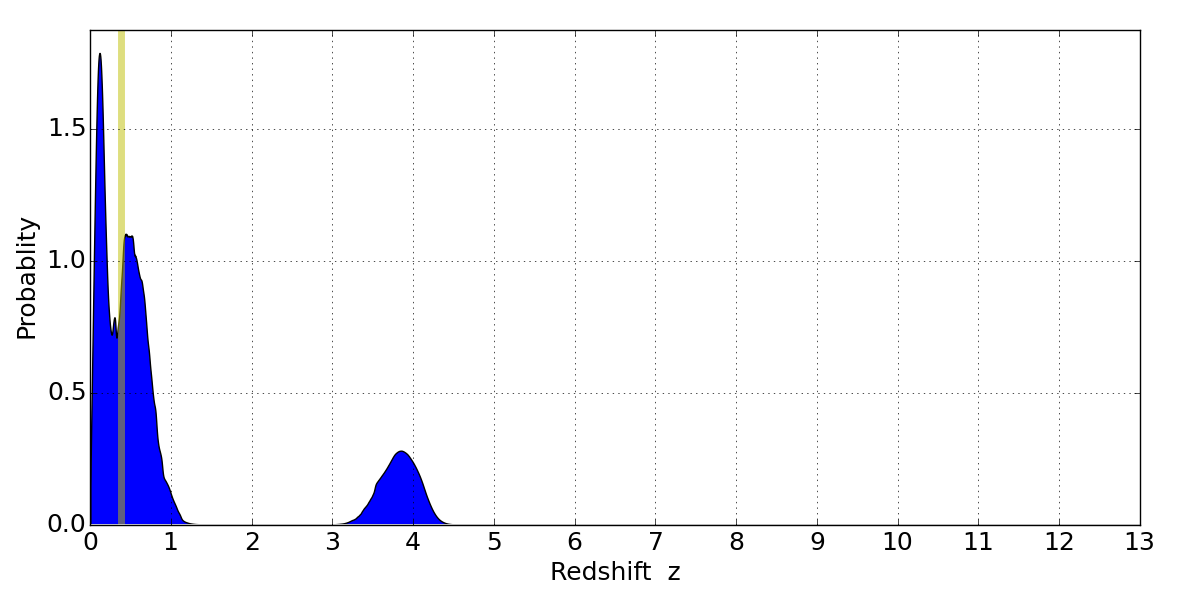 Best viewed in a wide browser window (1200 pixels or more). Download SED & P(z) plots to view larger versions.