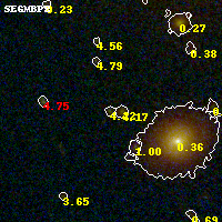 Object #610 x,y = (1938, 2289) RA, Dec = (09:49:53.448, 17:07:02.64) = (147.47270, 17.11740) BPZ = 4.224 [0.455--4.433] type = 9.80 (SB3_B10 - SB2_B10) chisq2 = 0.38 ODDS = 0.58 z_cluster = 0.383