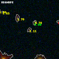 Object #618 x,y = (3471, 2275) RA, Dec = (09:49:47.040, 17:07:01.92) = (147.44600, 17.11720) BPZ = 1.115 [0.079--1.246] type = 8.80 (SB2_B10 - SB1_B10) chisq2 = 0.25 ODDS = 0.70 z_cluster = 0.383