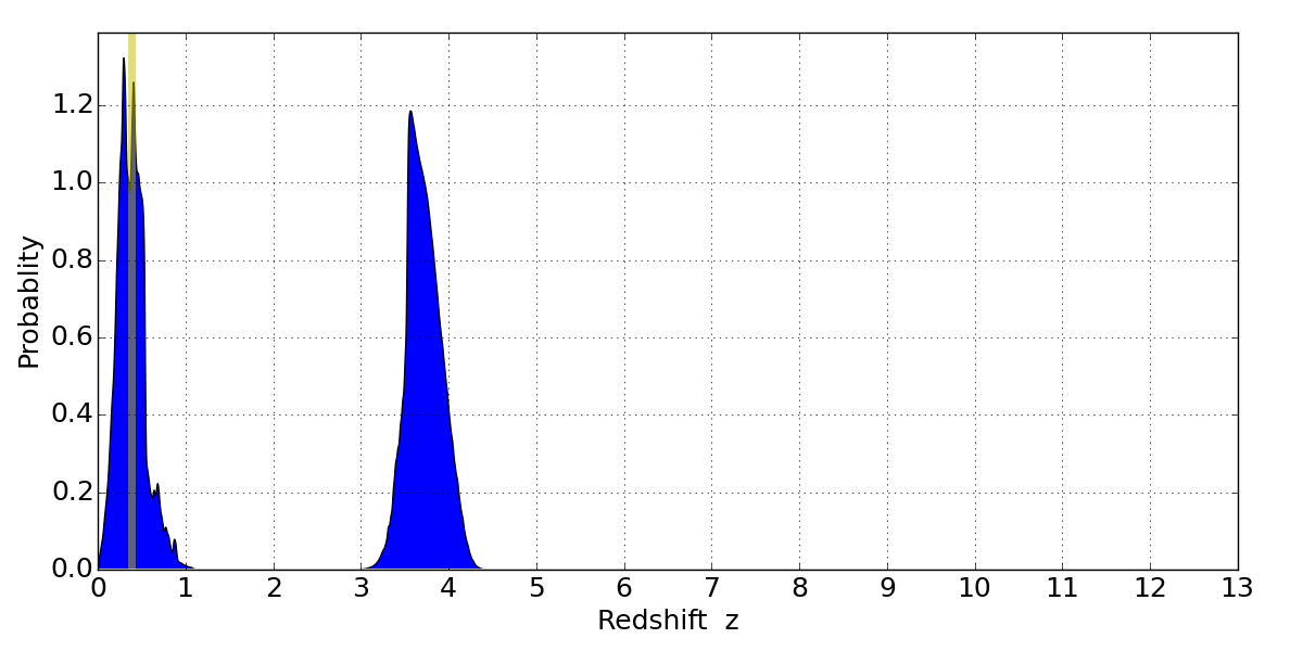 Best viewed in a wide browser window (1200 pixels or more). Download SED & P(z) plots to view larger versions.