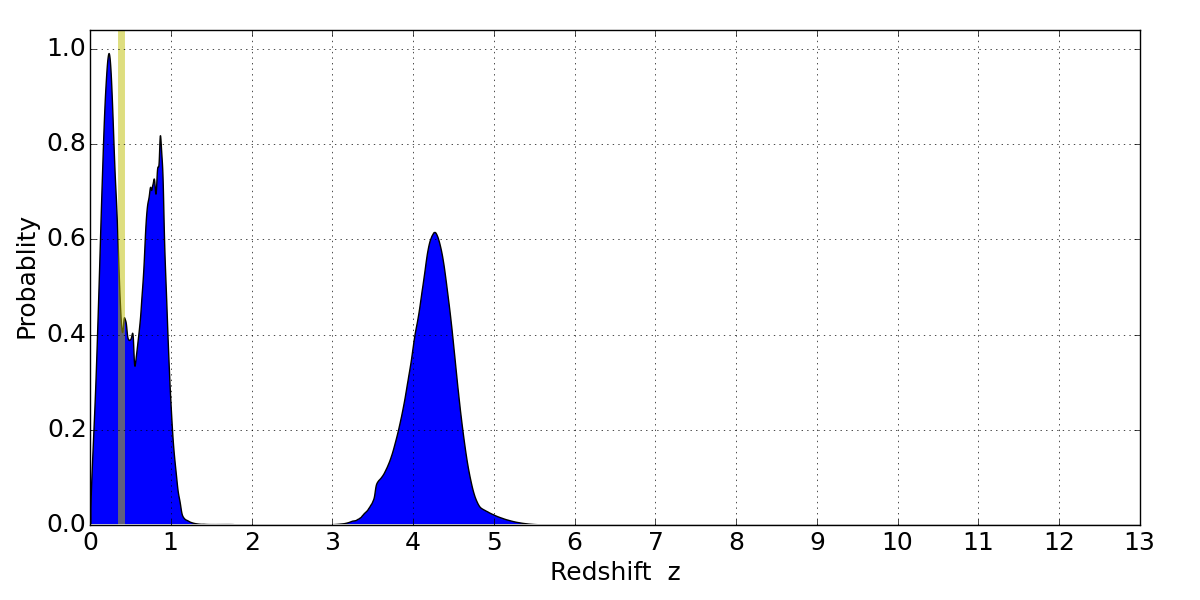 Best viewed in a wide browser window (1200 pixels or more). Download SED & P(z) plots to view larger versions.