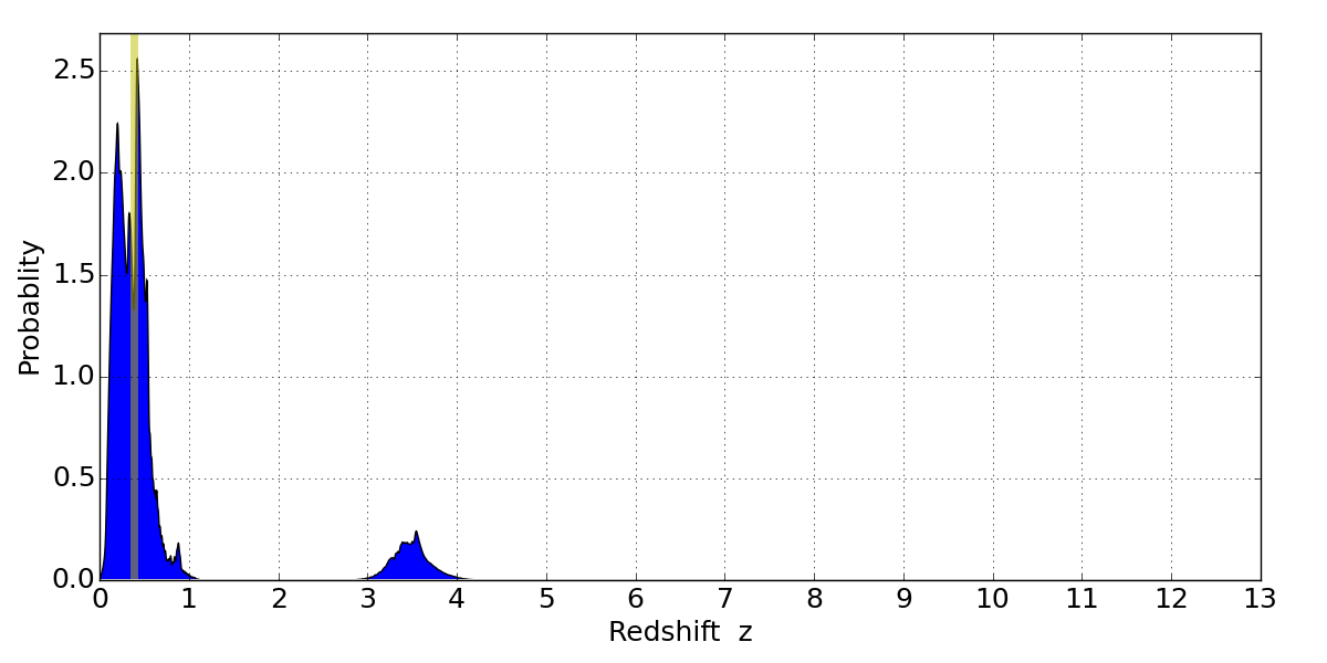 Best viewed in a wide browser window (1200 pixels or more). Download SED & P(z) plots to view larger versions.