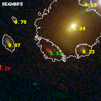 Object #747 x,y = (1426, 1835) RA, Dec = (09:49:55.584, 17:06:35.28) = (147.48160, 17.10980) BPZ = 1.166 [1.108--1.267] type = 6.40 (Sbc_B10 - Scd_B10) chisq2 = 0.12 ODDS = 0.95 z_cluster = 0.383
