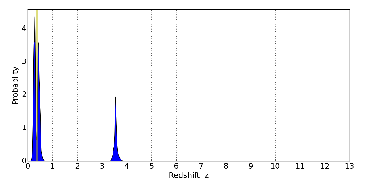 Best viewed in a wide browser window (1200 pixels or more). Download SED & P(z) plots to view larger versions.