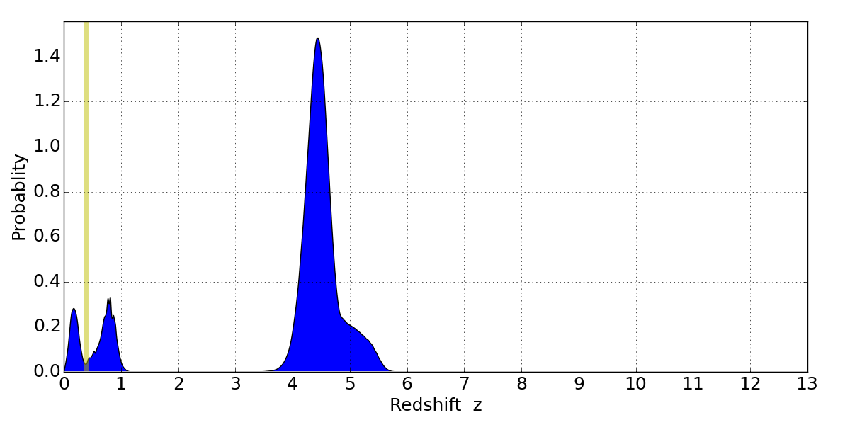 Best viewed in a wide browser window (1200 pixels or more). Download SED & P(z) plots to view larger versions.