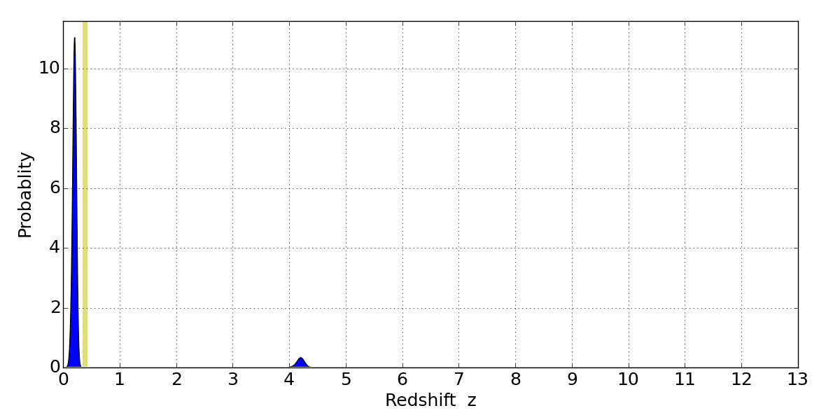 Best viewed in a wide browser window (1200 pixels or more). Download SED & P(z) plots to view larger versions.