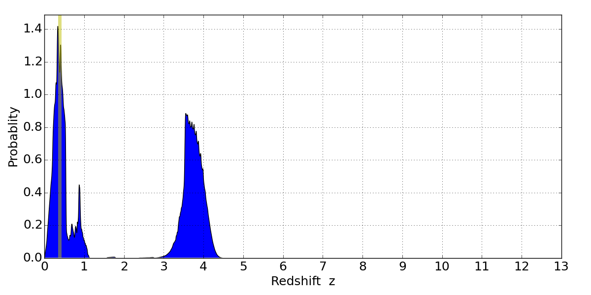 Best viewed in a wide browser window (1200 pixels or more). Download SED & P(z) plots to view larger versions.