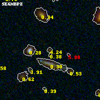 Object #812 x,y = (1996, 1917) RA, Dec = (09:49:53.208, 17:06:40.32) = (147.47170, 17.11120) BPZ = 4.243 [0.183--4.451] type = 8.60 (SB2_B10 - SB1_B10) chisq2 = 0.61 ODDS = 0.85 z_cluster = 0.383