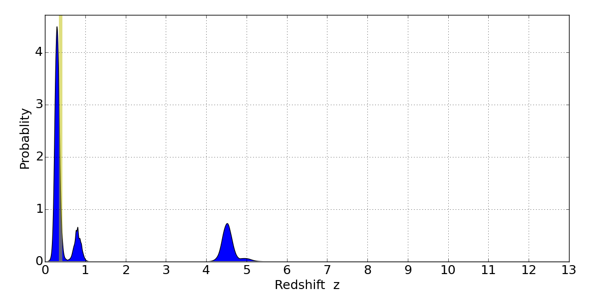 Best viewed in a wide browser window (1200 pixels or more). Download SED & P(z) plots to view larger versions.