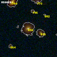 Object #816 x,y = (2155, 1892) RA, Dec = (09:49:52.536, 17:06:38.88) = (147.46890, 17.11080) BPZ = 0.377 [0.279--0.419] type = 3.00 (Ell5_A_0) chisq2 = 0.07 ODDS = 0.81 z_cluster = 0.383