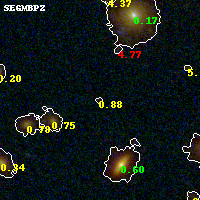 Object #820 x,y = (2077, 2050) RA, Dec = (09:49:52.872, 17:06:48.24) = (147.47030, 17.11340) BPZ = 0.875 [0.106--4.775] type = 8.40 (SB1_B10 - SB2_B10) chisq2 = 0.31 ODDS = 0.13 z_cluster = 0.383