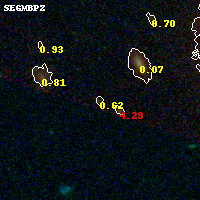 Object #868 x,y = (1304, 1815) RA, Dec = (09:49:56.112, 17:06:34.20) = (147.48380, 17.10950) BPZ = 0.622 [0.128--4.331] type = 8.30 (SB1_B10 - SB2_B10) chisq2 = 0.55 ODDS = 0.14 z_cluster = 0.383