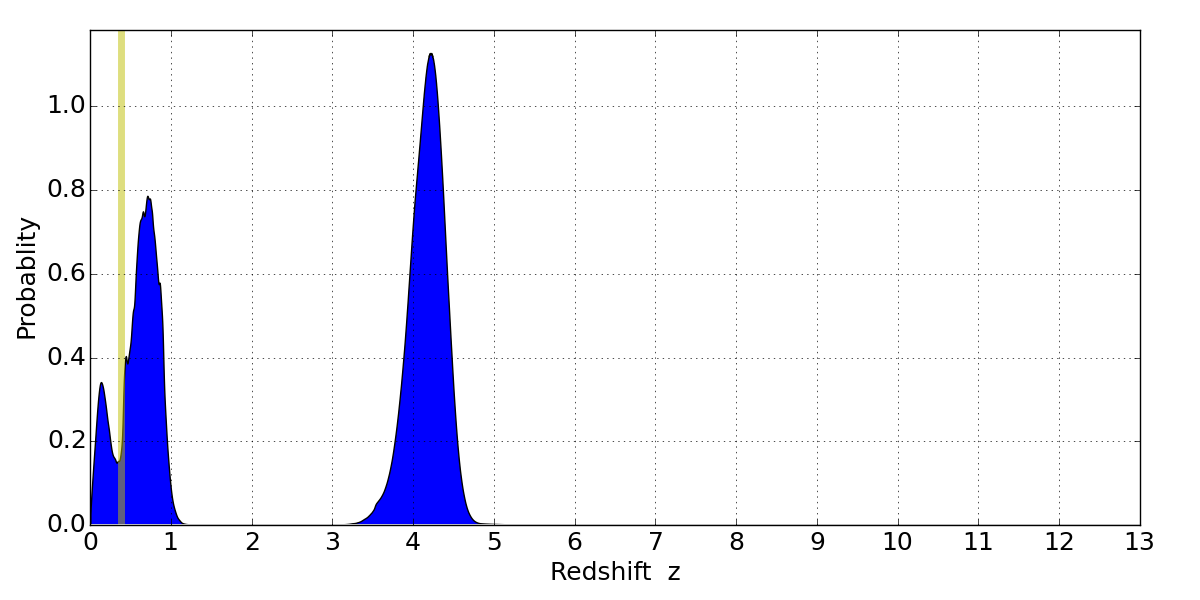 Best viewed in a wide browser window (1200 pixels or more). Download SED & P(z) plots to view larger versions.