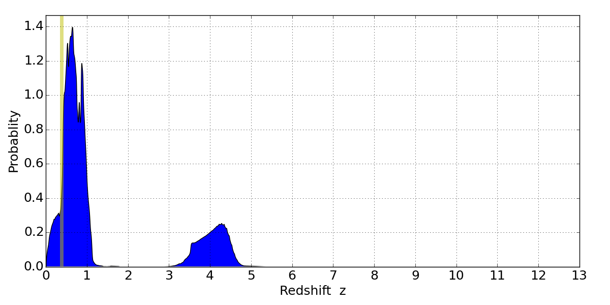 Best viewed in a wide browser window (1200 pixels or more). Download SED & P(z) plots to view larger versions.