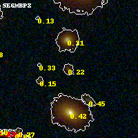 Object #948 x,y = (2636, 1615) RA, Dec = (09:49:50.520, 17:06:22.32) = (147.46050, 17.10620) BPZ = 0.222 [0.121--1.030] type = 3.00 (Ell5_A_0) chisq2 = 0.30 ODDS = 0.22 z_cluster = 0.383