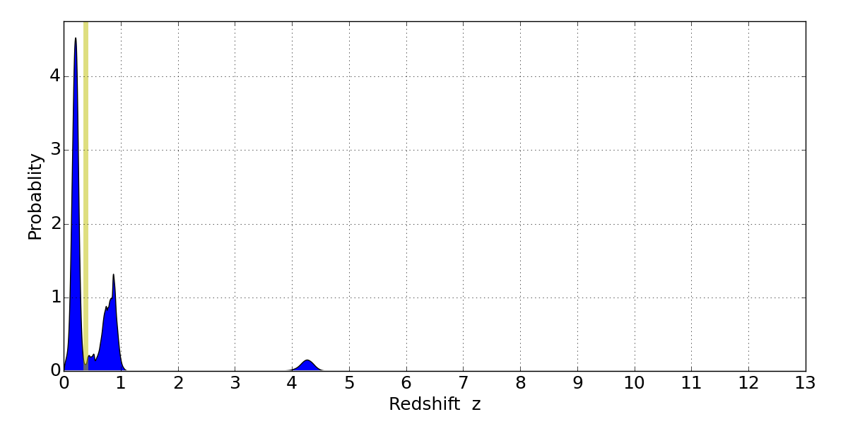 Best viewed in a wide browser window (1200 pixels or more). Download SED & P(z) plots to view larger versions.