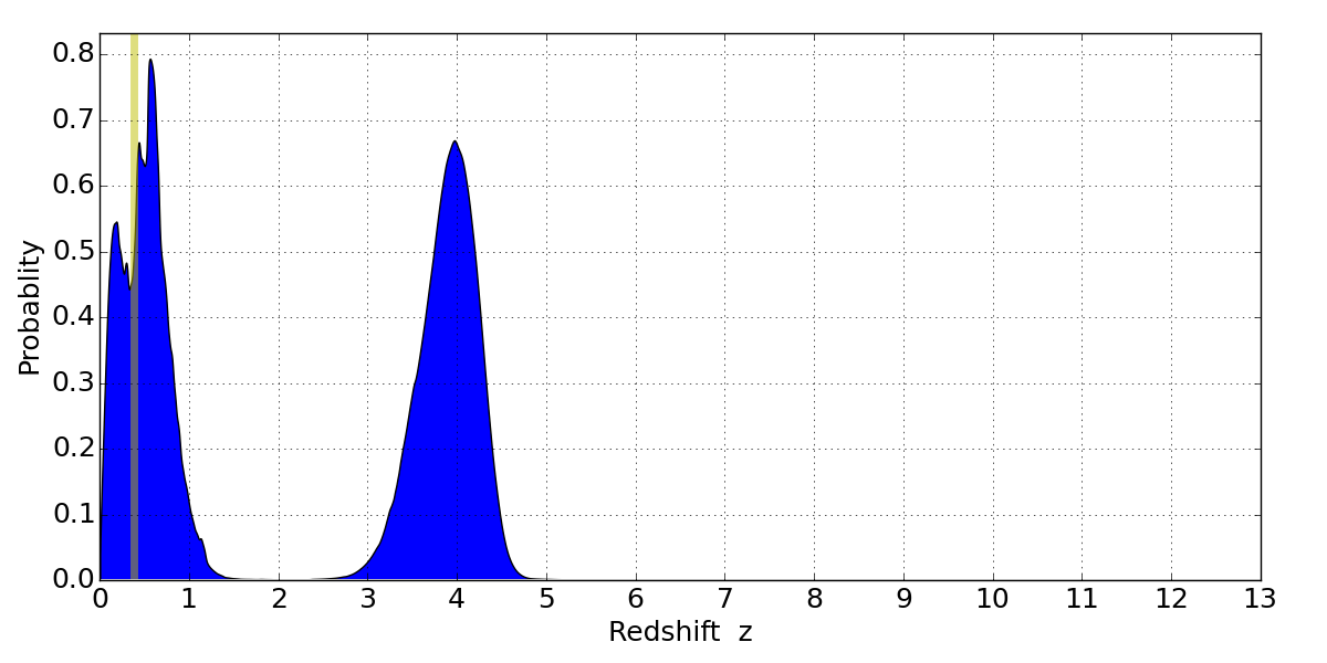 Best viewed in a wide browser window (1200 pixels or more). Download SED & P(z) plots to view larger versions.