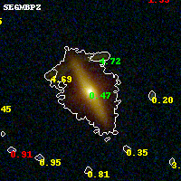 Object #981 x,y = (2786, 1487) RA, Dec = (09:49:49.896, 17:06:14.40) = (147.45790, 17.10400) BPZ = 0.466 [0.411--0.509] type = 1.80 (Ell6_A_0 - Ell7_A_0) chisq2 = 0.04 ODDS = 0.98 z_cluster = 0.383