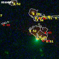 Object #996 x,y = (2384, 1484) RA, Dec = (09:49:51.600, 17:06:14.40) = (147.46500, 17.10400) BPZ = 6.521 [0.833--7.515] type = 11.00 (SB11_A_0_l) chisq2 = 0.45 ODDS = 0.37 z_cluster = 0.383
