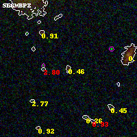 Object #242 x,y = (3609, 4145) RA, Dec = (09:49:48.144, 17:09:0) = (147.45060, 17.15000) BPZ = 0.459 [0.232--4.237] type = 3.00 (Ell5_A_0) chisq2 = 0.24 ODDS = 0.12 z_cluster = 0.383