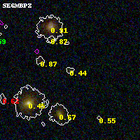 Object #3985 x,y = (2613, 1840) RA, Dec = (09:49:52.320, 17:06:41.76) = (147.46800, 17.11160) BPZ = 0.440 [0.142--3.852] type = 10.00 (SB3_B10) chisq2 = 0.64 ODDS = 0.55 z_cluster = 0.383