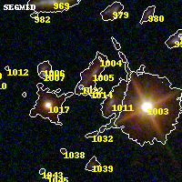 Object #1014 x,y = (3703, 1323) RA, Dec = (09:49:47.736, 17:06:10.80) = (147.44890, 17.10300) BPZ = 1.585 [1.311--1.973] type = 8.40 (SB1_B10 - SB2_B10) chisq2 = 1.45 ODDS = 0.49 z_cluster = 0.383