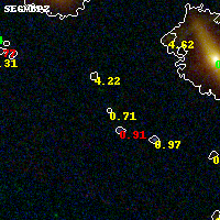 Object #1016 x,y = (3089, 1339) RA, Dec = (09:49:50.328, 17:06:11.88) = (147.45970, 17.10330) BPZ = 0.714 [0.157--4.847] type = 9.00 (SB2_B10) chisq2 = 0.62 ODDS = 0.11 z_cluster = 0.383