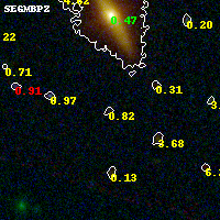 Object #1037 x,y = (3183, 1299) RA, Dec = (09:49:49.920, 17:06:09.36) = (147.45800, 17.10260) BPZ = 0.817 [0.125--5.533] type = 8.20 (SB1_B10 - SB2_B10) chisq2 = 0.90 ODDS = 0.16 z_cluster = 0.383