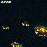 Object #11 x,y = (2612, 3561) RA, Dec = (09:49:52.320, 17:08:25.08) = (147.46800, 17.14030) BPZ = 0.908 [0.250--1.043] type = 7.80 (SB1_B10 - Scd_B10) chisq2 = 0.14 ODDS = 0.41 z_cluster = 0.383