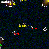 Object #130 x,y = (3351, 3093) RA, Dec = (09:49:49.224, 17:07:57.00) = (147.45510, 17.13250) BPZ = 1.744 [1.489--1.833] type = 8.50 (SB2_B10 - SB1_B10) chisq2 = 0.29 ODDS = 0.75 z_cluster = 0.383