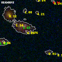 Object #140 x,y = (3076, 3036) RA, Dec = (09:49:50.376, 17:07:53.40) = (147.45990, 17.13150) BPZ = 1.759 [1.129--2.447] type = 8.40 (SB1_B10 - SB2_B10) chisq2 = 0.54 ODDS = 0.34 z_cluster = 0.383