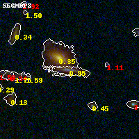 Object #218 x,y = (2741, 2853) RA, Dec = (09:49:51.768, 17:07:42.60) = (147.46570, 17.12850) BPZ = 0.949 [0.848--1.002] type = 8.80 (SB2_B10 - SB1_B10) chisq2 = 0.07 ODDS = 0.94 z_cluster = 0.383