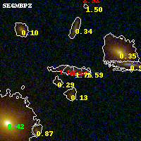 Object #243 x,y = (2656, 2845) RA, Dec = (09:49:52.128, 17:07:41.88) = (147.46720, 17.12830) BPZ = 0.339 [0.027--1.669] type = 8.30 (SB1_B10 - SB2_B10) chisq2 = 1.28 ODDS = 0.28 z_cluster = 0.383