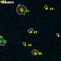 Object #273 x,y = (3539, 2799) RA, Dec = (09:49:48.432, 17:07:39.36) = (147.45180, 17.12760) BPZ = 0.666 [0.072--0.900] type = 7.90 (SB1_B10 - Scd_B10) chisq2 = 0.11 ODDS = 0.30 z_cluster = 0.383