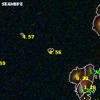 Object #318 x,y = (1991, 2730) RA, Dec = (09:49:54.912, 17:07:35.04) = (147.47880, 17.12640) BPZ = 0.557 [0.139--4.082] type = 8.80 (SB2_B10 - SB1_B10) chisq2 = 0.69 ODDS = 0.13 z_cluster = 0.383