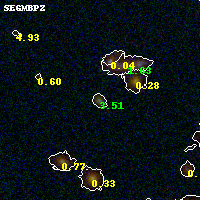 Object #33 x,y = (2558, 3431) RA, Dec = (09:49:52.536, 17:08:17.16) = (147.46890, 17.13810) BPZ = 3.514 [3.382--3.644] type = 9.40 (SB2_B10 - SB3_B10) chisq2 = 0.13 ODDS = 0.99 z_cluster = 0.383