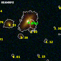 Object #332 x,y = (3828, 2629) RA, Dec = (09:49:47.232, 17:07:28.92) = (147.44680, 17.12470) BPZ = 1.831 [1.315--3.019] type = 7.40 (Scd_B10 - SB1_B10) chisq2 = 0.54 ODDS = 0.23 z_cluster = 0.383