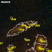 Object #358 x,y = (2570, 2617) RA, Dec = (09:49:52.488, 17:07:28.20) = (147.46870, 17.12450) BPZ = 0.844 [0.189--4.408] type = 8.10 (SB1_B10 - SB2_B10) chisq2 = 0.16 ODDS = 0.32 z_cluster = 0.383