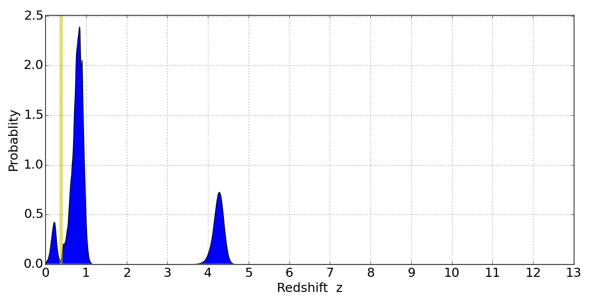 Best viewed in a wide browser window (1200 pixels or more). Download SED & P(z) plots to view larger versions.