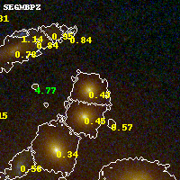 Object #389 x,y = (2628, 2562) RA, Dec = (09:49:52.248, 17:07:24.96) = (147.46770, 17.12360) BPZ = 0.431 [0.359--0.469] type = 3.00 (Ell5_A_0) chisq2 = 0.03 ODDS = 0.94 z_cluster = 0.383