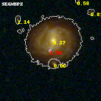Object #397 x,y = (3634, 2529) RA, Dec = (09:49:48.024, 17:07:23.16) = (147.45010, 17.12310) BPZ = 1.585 [1.565--1.626] type = 8.30 (SB1_B10 - SB2_B10) chisq2 = 7.46 ODDS = 1.00 z_cluster = 0.383