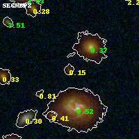 Object #51 x,y = (2646, 3363) RA, Dec = (09:49:52.176, 17:08:13.20) = (147.46740, 17.13700) BPZ = 0.152 [0.069--0.265] type = 3.40 (Ell5_A_0 - Ell4_A_0) chisq2 = 0.33 ODDS = 0.72 z_cluster = 0.383