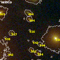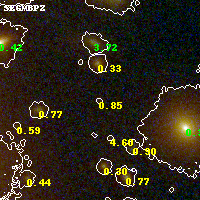 Object #516 x,y = (2915, 2329) RA, Dec = (09:49:51.048, 17:07:10.92) = (147.46270, 17.11970) BPZ = 0.848 [0.128--4.130] type = 9.10 (SB2_B10 - SB3_B10) chisq2 = 0.37 ODDS = 0.18 z_cluster = 0.383
