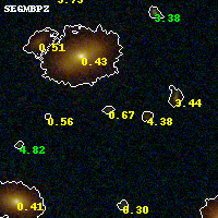 Object #518 x,y = (3374, 2323) RA, Dec = (09:49:49.128, 17:07:10.92) = (147.45470, 17.11970) BPZ = 0.665 [0.265--4.344] type = 9.00 (SB2_B10) chisq2 = 0.36 ODDS = 0.21 z_cluster = 0.383